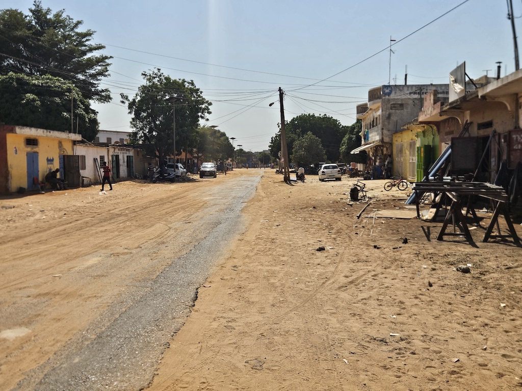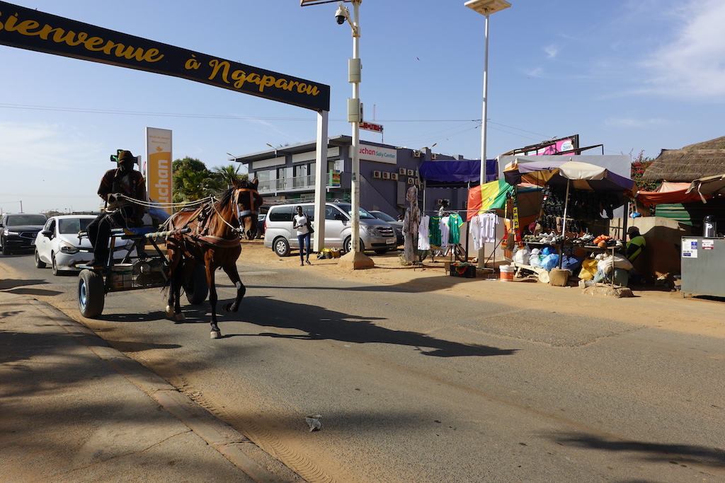 SUV flambants neufs côtoient de vieilles carrioles en bois tractées par des chevaux faméliques autour desquels virevoltent d’innombrables Jakartas, ces petites motos-taxis typiquement sénégalaises.