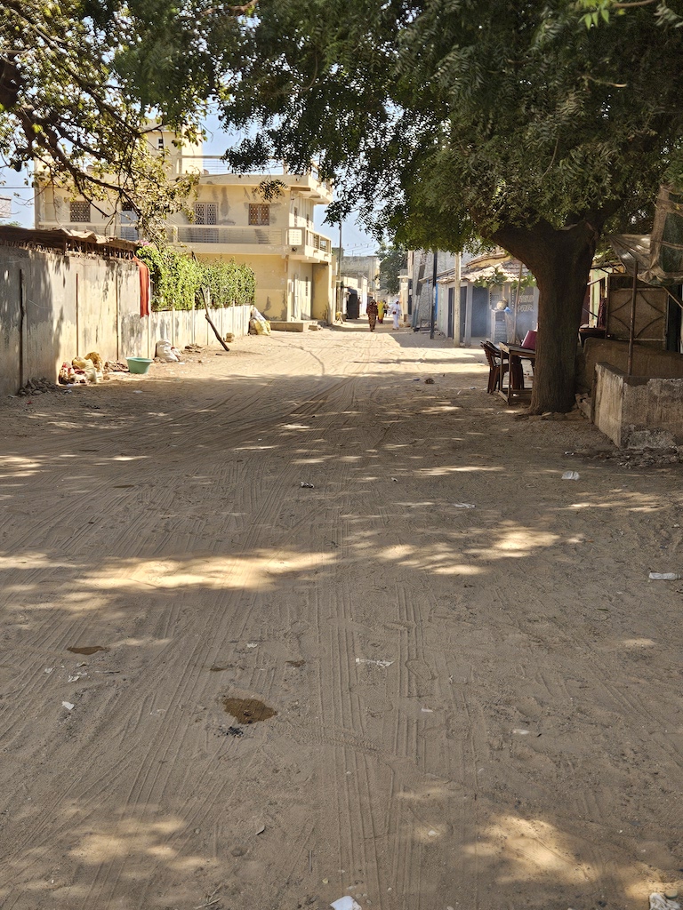 On y roule lentement. Non par civisme, mais parce que la route l’exige. Elle est défoncée par l’usage, par le temps et très vite les lambeaux de goudron laissent place au seul sable brut.