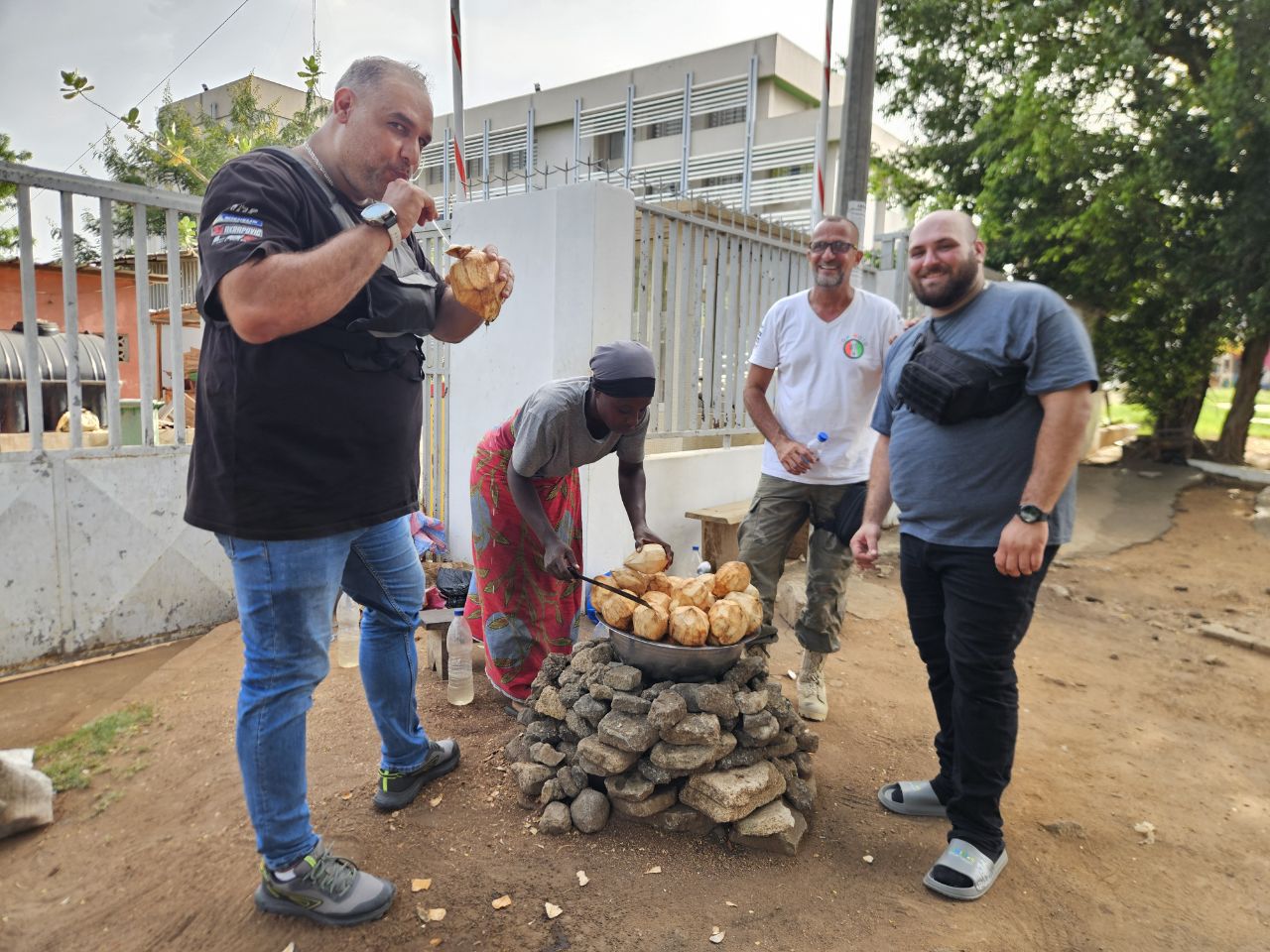 On the way, I spot a tailor. This time, it’s my jeans that are torn. I decide to leave them for repair — but that leaves me in shorts. Some embassies are quite strict about dress code, so I look for a boubou to be properly dressed when entering.