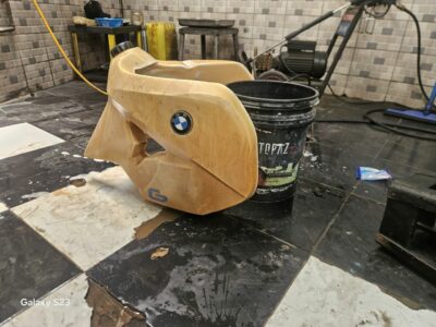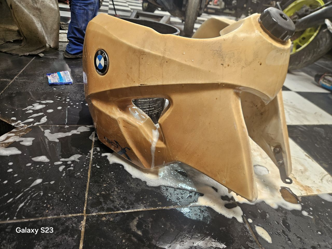 Yayya then uses a kind of resin (with a smell similar to what dentists use). According to him, this material resists fuel.