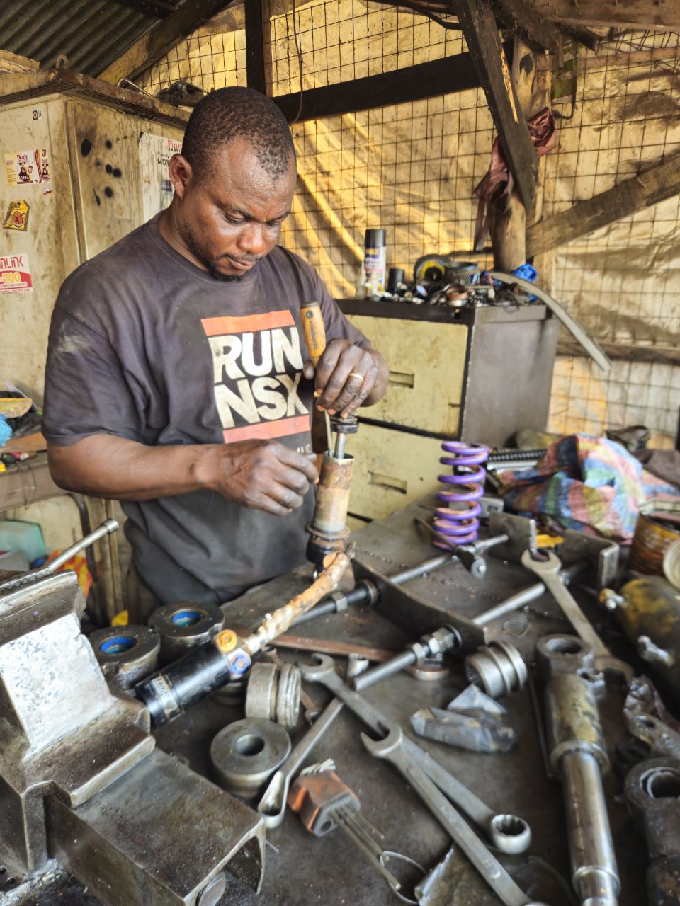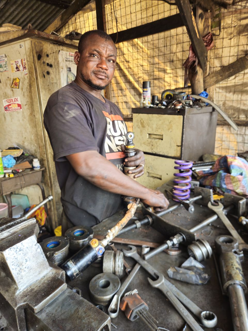 His name is Rachid. The mechanic I found on iOverlander, apparently specialized in suspension, forks, and hydraulics in general.