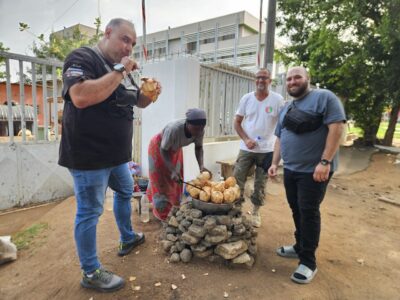 After two fuel stops and a coffee, I arrive in Bouaké around 11–11:30, at the Hôtel de l’Art, built and run by a Frenchman who has lived in Africa for… 72 years. That is, since birth. Ironworker, construction entrepreneur, and painter on the side: quite a character.