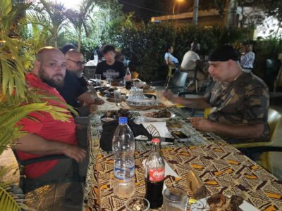 At lunchtime, as usual, sandwiches/skewers with Riad, Wissam, and the others. I am now officially and definitively accepted into the Lebanese circle. I must admit, I feel good with them. My Eastern side coming back out. It’s in moments like these that you realize how deeply the culture you grew up in shapes you.