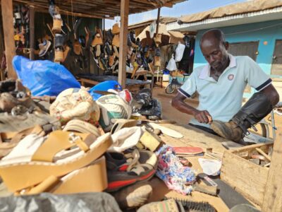 In between errands, a small amusing scene: while sitting down in a café, I notice that my African trousers are torn. I ask the waitress where I can get them repaired. She calls over a guy who just happens to be passing by with a sewing machine. I change, sip my coffee… and ten minutes later I’m back on my way with my trousers fixed for 500 CFA.