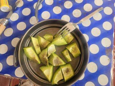 A quiet morning with Samuel over coffee — quite unusual for him. He has made his decision: to return to France and put his trip on hold. The solitude, and above all the now overwhelming heat, have drained his motivation. It must be said he has an extraordinary metabolism: I’ve never seen anyone eat and drink so much. The heat literally exhausts him.