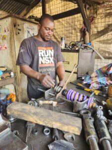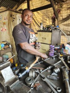 So… on iOverlander, I found a mechanic in Accra, specialized in suspension and hydraulic systems. He recently rebuilt the rear shock of a T7. He should be able to help me. I’m 140 km away.