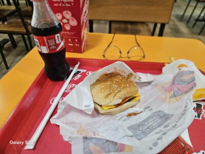 Cheeseburger, fries, Coke: 5500 CFA, a bit over eight euros. I don’t know how much a cheeseburger costs in France today, but overall life in Abidjan is expensive — more than Senegal anyway.